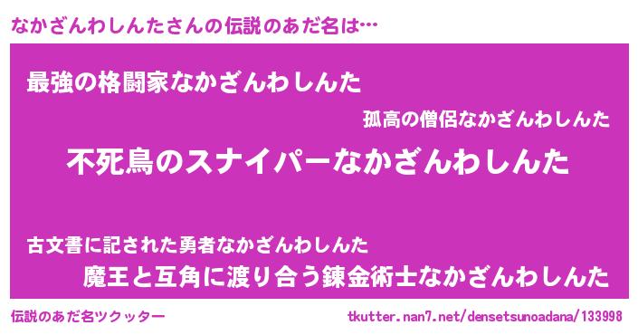 | 女子向けラノベタイトル風あだ名 | 『なかざんわしんた姫と円卓の騎士』 |