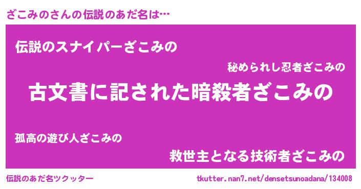 | ヒーロー風カッコイイあだ名 | 『仮面ザコダー』『ネオザコミノ』 |