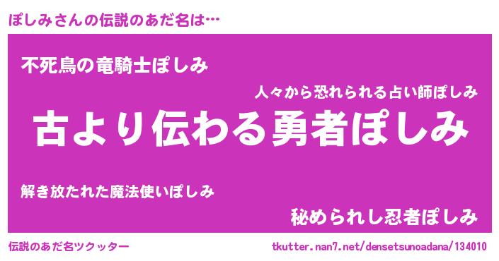 | 意味不明あだ名 | 『住所不定無職ぽしみ(79歳)』『自称ぽしみ』 |