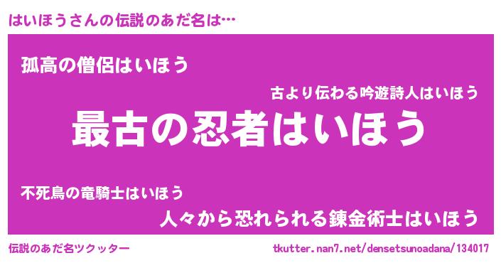 | 意味不明あだ名 | 『はいほうフォーエバー』 |
