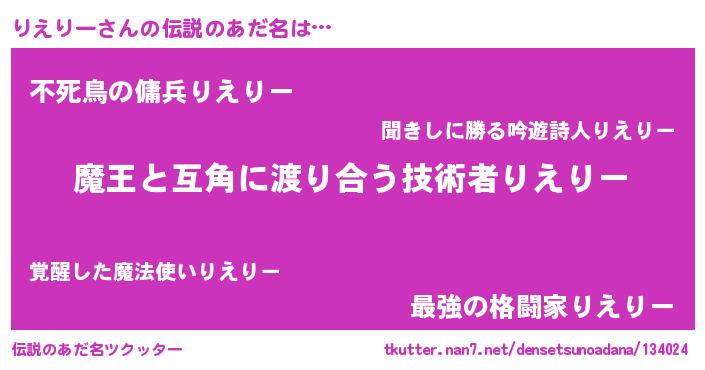 | 男性向けラノベタイトル風あだ名 | 『転生したらりえりーだった件』 |