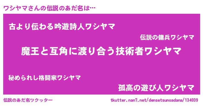 | 胡散臭い通販商品みたいなあだ名 | 『世界中を虜にした100年もののヴィンテージワイン…その名も「ワシヤマ」』 |