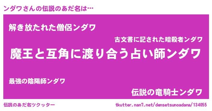 | ポケモン風あだ名 | 『ンックウザ』『ンダキング』 |