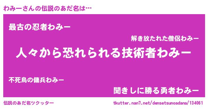 | ヒーロー風カッコイイあだ名 | 『友情の使者わみー』『ネオワミー』 |