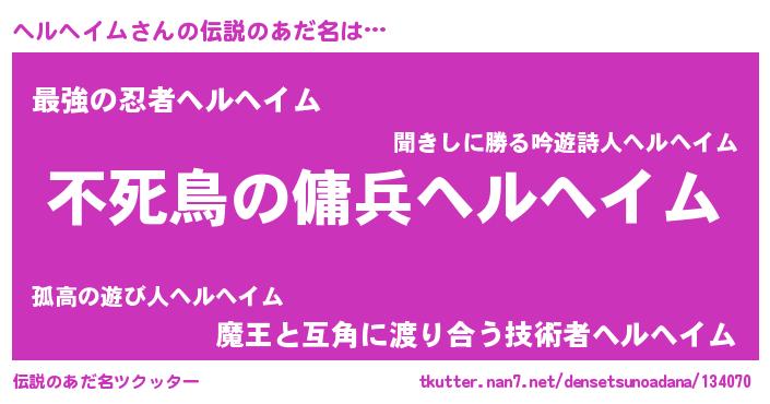 | ファンタジー風あだ名 | 『ゼヘルトゥ』『ヘルフェル』 |