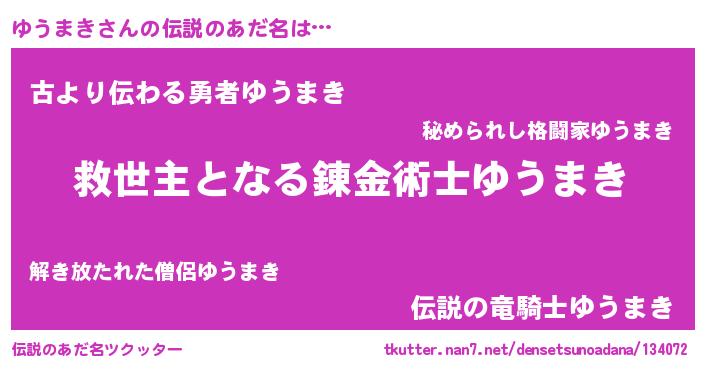 | ヒーロー風カッコイイあだ名 | 『慈愛の使者ゆうまき』『ネオユウマキ』 |