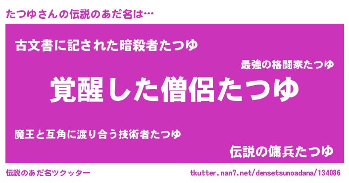 | ヒーロー風カッコイイあだ名 | 『最強戦士タツユ』『幻影騎士タツ』 |