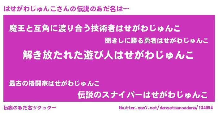 | ヒーロー風カッコイイあだ名 | 『銀牙騎士ハセ』『ネオハセガワジュンコ』 |