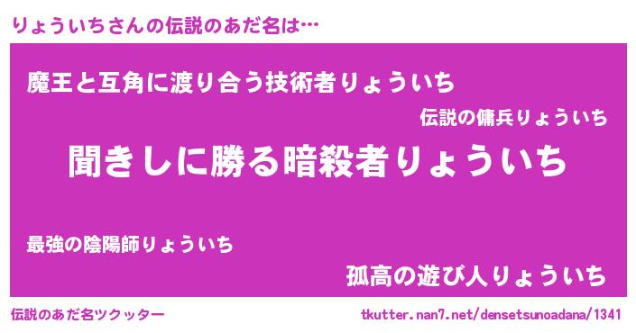 | 男性向けラノベタイトル風あだ名 | 『りょういちという概念が存在しない退屈な世界 』 |