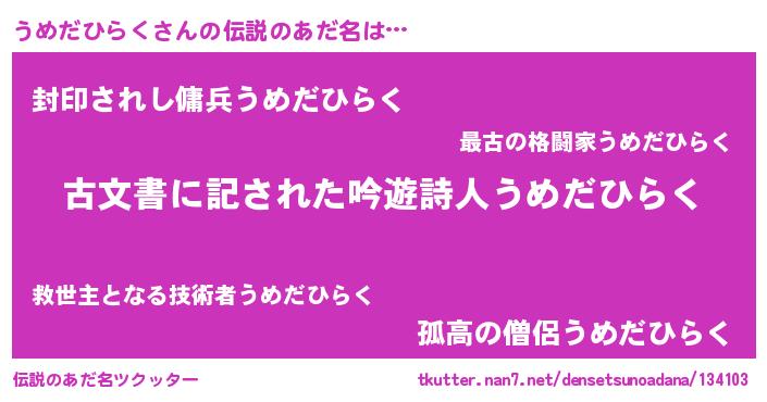 | ヘコむあだ名 | 『うめだひらく(笑)』『うめもー』 |