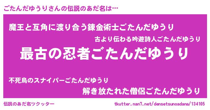 | ファンタジー風あだ名 | 『エターナルゴタンダユウリー』 |