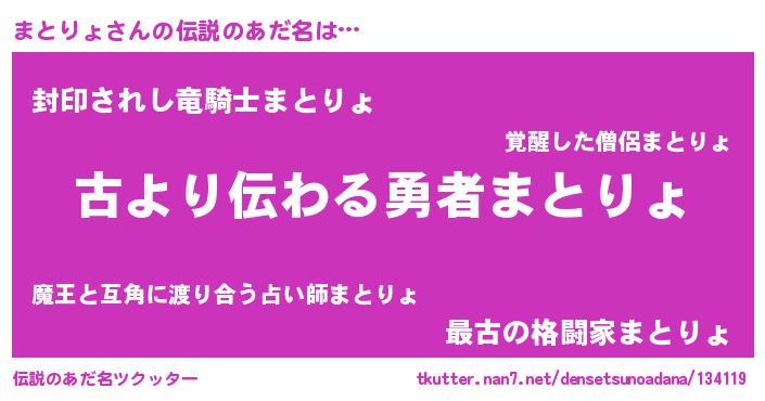 | ヘコむあだ名 | 『まとりょ(震え声)』『まとふぇ~』 |
