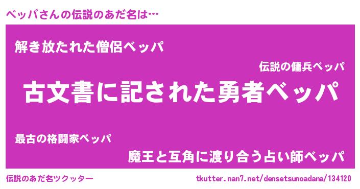 | ヒーロー風カッコイイあだ名 | 『ネオベッパ』『魔戒騎士ベッ』 |