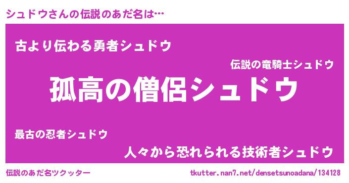 | ヒーロー風カッコイイあだ名 | 『暗黒騎士シュ』『仮面シュダー』 |
