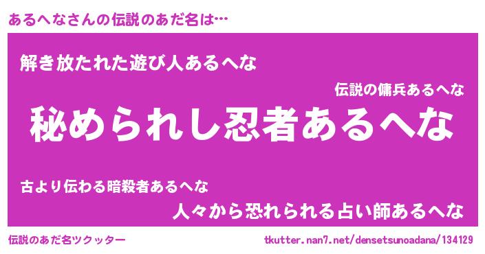 | 意味不明あだ名 | 『あるへなフォーエバー』『自称あるへな』 |