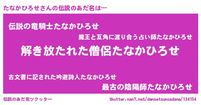 | 男性向けラノベタイトル風あだ名 | 『魔弾の王とたなかひろせ』 |