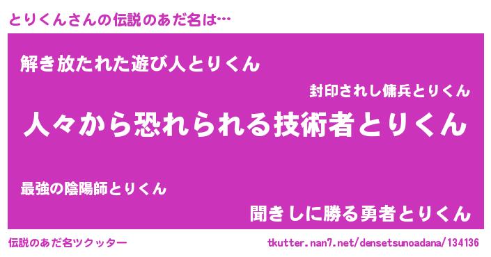 | 肩書あだ名 | 『とりくん助教授』『とりくん班長』 |