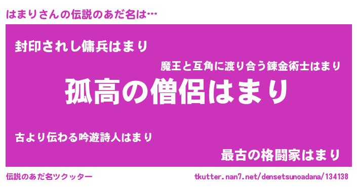 | ヒーロー風カッコイイあだ名 | 『魔戒騎士ハマ』『スーパーハマリ』 |