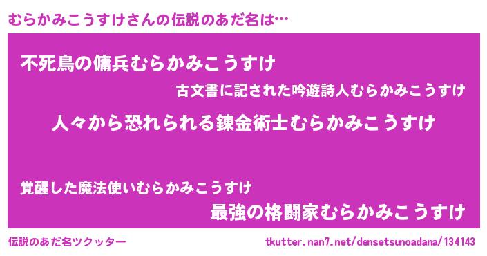 | 意味不明あだ名 | 『自称むらかみこうすけ』 |