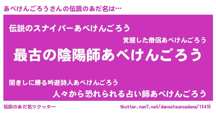 | 意味不明あだ名 | 『住所不定無職あべけんごろう(89歳)』 |
