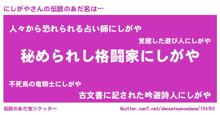 | 意味不明あだ名 | 『住所不定無職にしがや(13歳)』 |