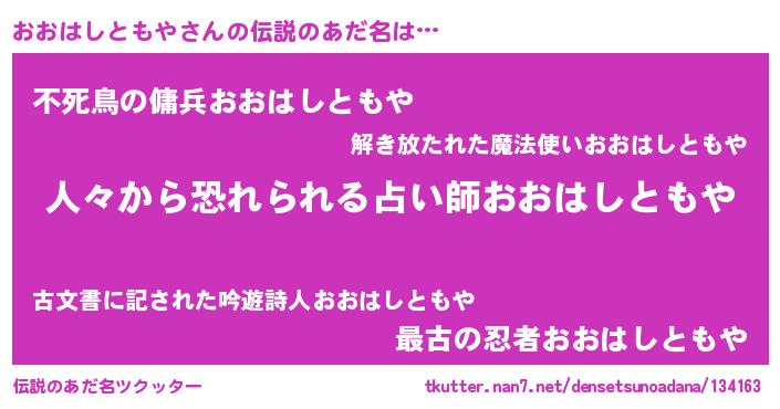 | 肩書あだ名 | 『おおはしともや閣下』 |