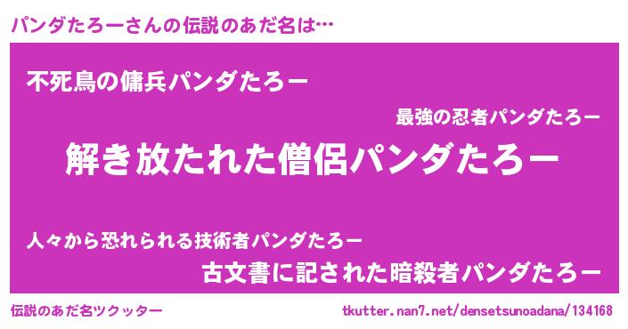 | 意味不明あだ名 | 『とにかく怪しいパンダたろー』 |