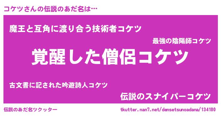 | ヒーロー風カッコイイあだ名 | 『究極戦士コケツ』『幻影騎士コケ』 |