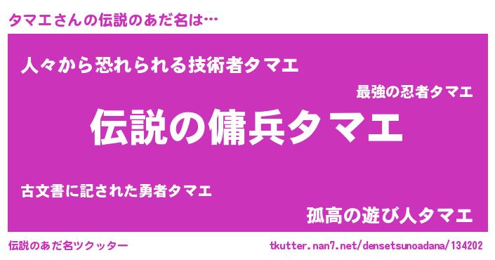 | ヒーロー風カッコイイあだ名 | 『スーパータマエ』『正義の使者タマエ』 |