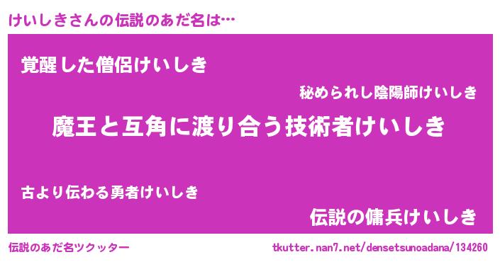 | 女子向けラノベタイトル風あだ名 | 『闇のけいしき』『死神けいしきの再婚』 |