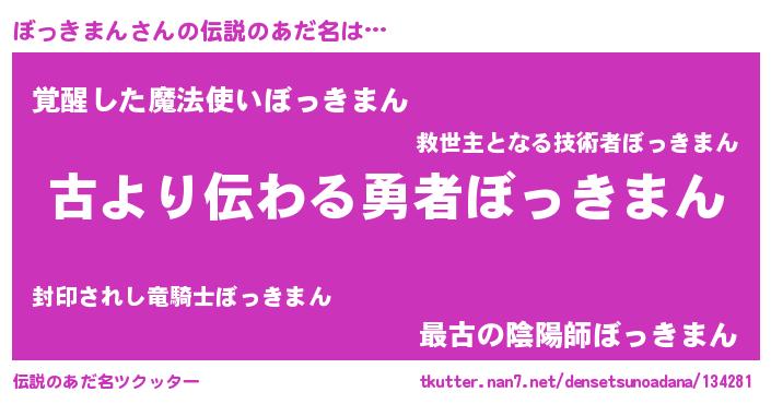 | 胡散臭い通販商品みたいなあだ名 | 『来世でも幸せになれる水素水…その名も「ぼっきまん」』 |