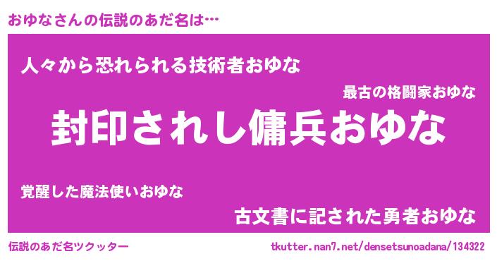 | ヘコむあだ名 | 『おゆもー』『おゆな(小並感)』 |