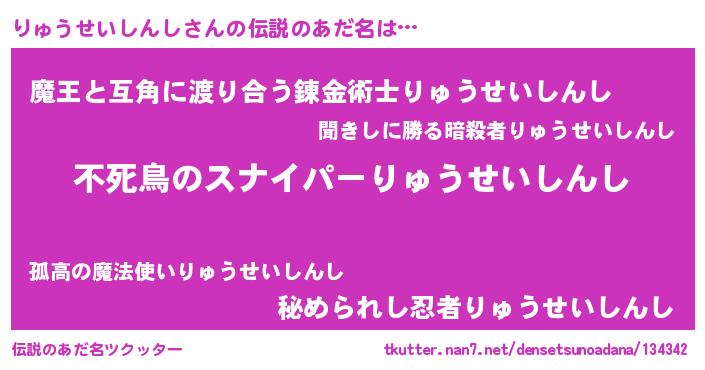 | 胡散臭い通販商品みたいなあだ名 | 『モテモテ間違いなし霊験あらたかなお札…その名も「りゅうせいしんし」』 |