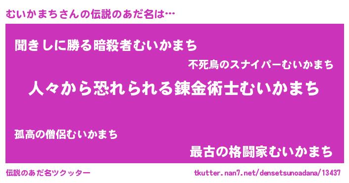 | ヒーロー風カッコイイあだ名 | 『仮面ムイダー』『慈愛の使者むいかまち』 |