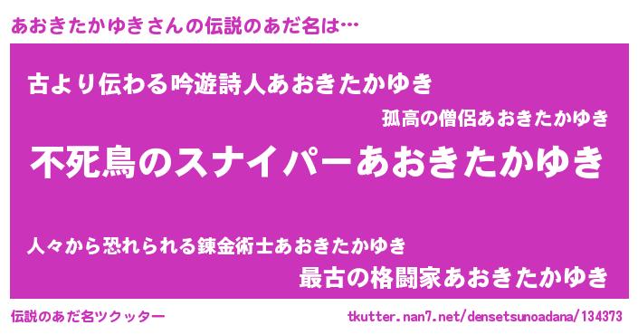 | 男性向けラノベタイトル風あだ名 | 『アオキタカユキアートオンライン』 |