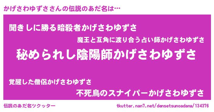 | 意味不明あだ名 | 『かげさわゆずさフォーエバー』 |