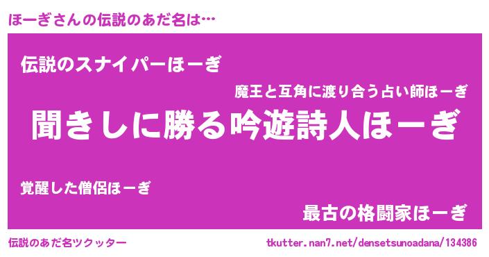 | ファンタジー風あだ名 | 『ホーディッシュ』『ゼホートゥ』 |