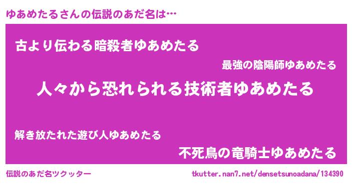 | ヘコむあだ名 | 『ゆあめたる(笑)』『ゆあにゅー』 |