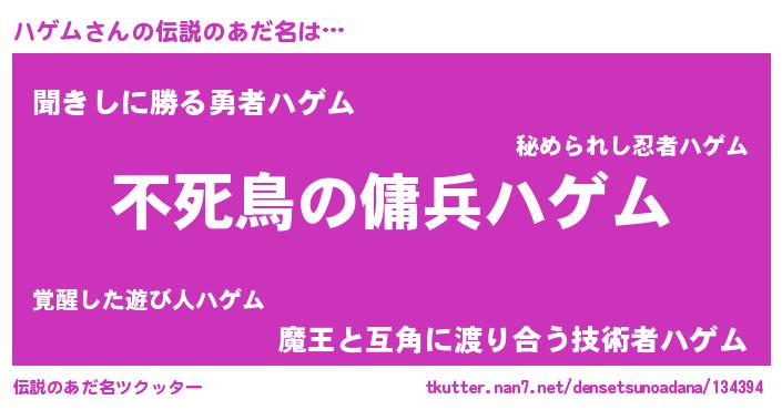 | ヒーロー風カッコイイあだ名 | 『サイバー戦士ハゲム』『スーパーハゲム』 |