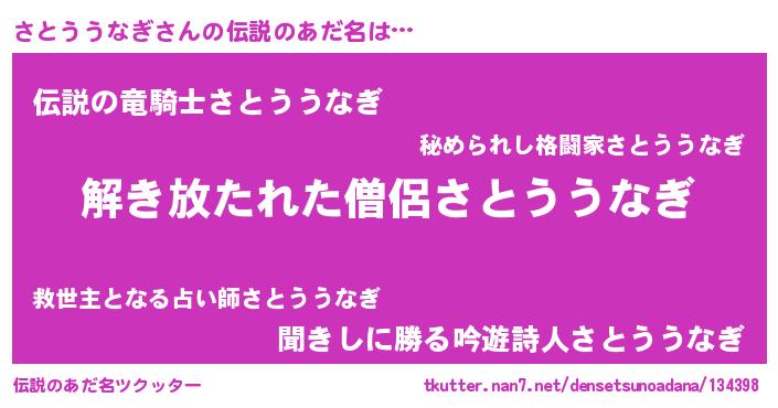 | 女子向けラノベタイトル風あだ名 | 『さとううなぎの卵を拾いまして』 |