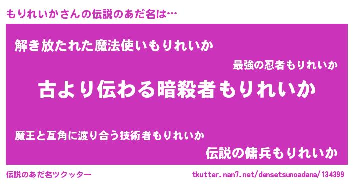 | 意味不明あだ名 | 『永久保存もりれいか』『自称もりれいか』 |