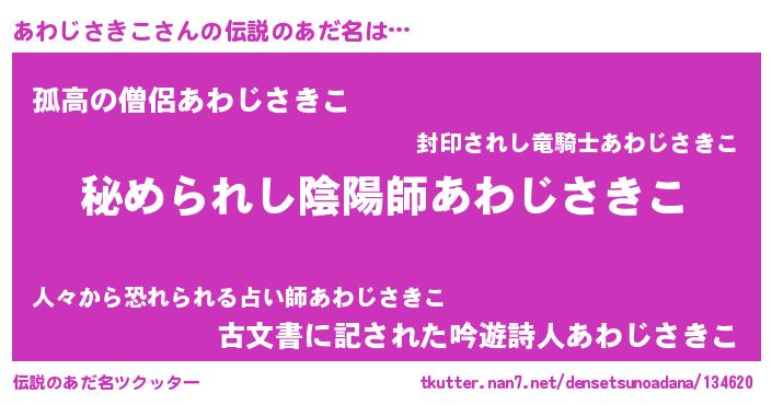 | 肩書あだ名 | 『あわじさきこ中将』『あわじさきこ閣下』 |