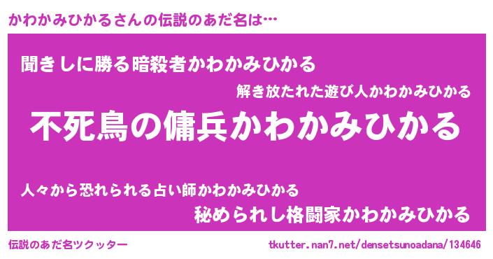 | 意味不明あだ名 | 『住所不定無職かわかみひかる(47歳)』 |