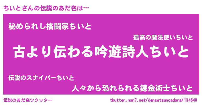 | 意味不明あだ名 | 『自称ちいと』『永久保存ちいと』 |