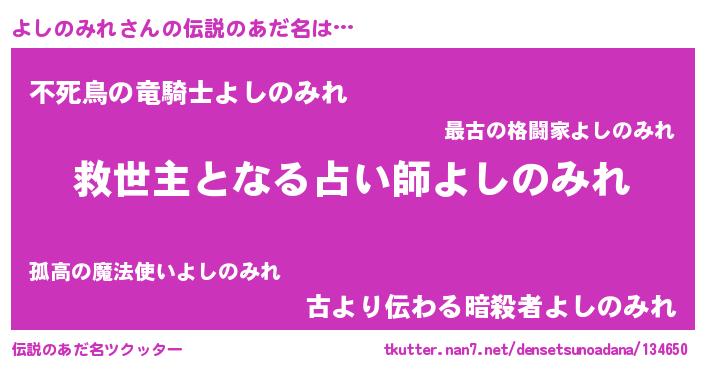 | ヘコむあだ名 | 『よしもー』『よしのみれ(小並感)』 |