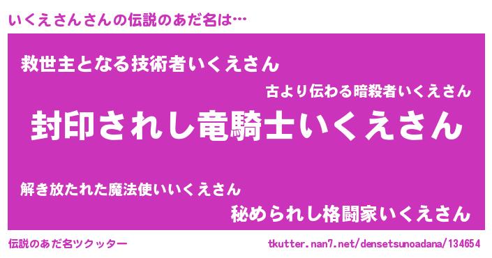 | 男性向けラノベタイトル風あだ名 | 『イクエサンアートオンライン』 |
