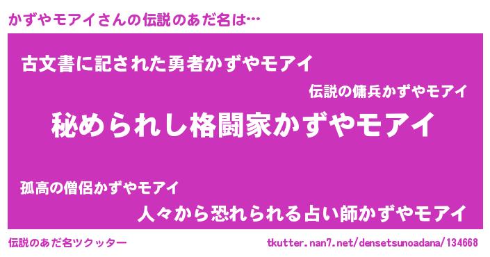 | 意味不明あだ名 | 『かずやモアイフォーエバー』 |