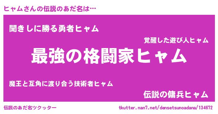 | ポケモン風あだ名 | 『ヒーャイ』『ヒャムダネ』 |