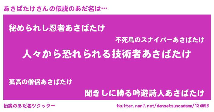 | ヒーロー風カッコイイあだ名 | 『友情の使者あさばたけ』『仮面アサダー』 |