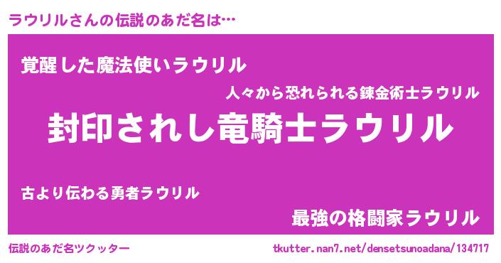 | 男性向けラノベタイトル風あだ名 | 『ラウリルアートオンライン』 |
